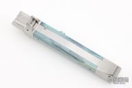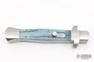 This Italian D/A OTF by Burn Knives features a satin finished double-edged blade with mother-of-pearl inlays. The handle has a stainless steel frame with giraffe bone scales. Nice action and lockup. Excellent condition. Comes with COA dated 7-14-22.