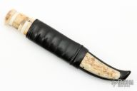 Roger Bergh is from Bygdea Sweden and specializes in Scandinavian style fixed blade knives with Damascus and natural handle materials. He started his knifemaking career working with leather in 1969. By 1973 he was making knife handles, and by 1995 after 15 years as a part-time knifemaker he started forging his own Damascus steel under the supervision and training of Conny Persson.
