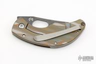 This Nano framelock is a collaboration between Fred Perrin and Max Knives, it features a black tumble finished blade with thumbhole. The handle has a bead blasted and laser engraved titanium frame with tip up clip, black tumbled stainless steel backspacer, lanyard hole at the butt. This was a run of 500 pieces, this one is #408. New from maker. Comes with a velcro case.