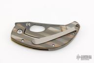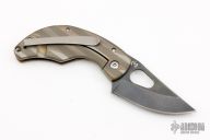 This Nano framelock is a collaboration between Fred Perrin and Max Knives, it features a black tumble finished blade with thumbhole. The handle has a bead blasted and laser engraved titanium frame with tip up clip, black tumbled stainless steel backspacer, lanyard hole at the butt. This was a run of 500 pieces, this one is #228. New from maker. Comes with a velcro case.