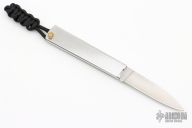 Fred Perrin makes fixed blades and folders of every kind; Forges Damascus steel or uses stock removal techniques. In any case, he always does his own heat treatment and tempering. As far as his background in the martial arts, Fred has spent two years in the French Army Commandos and worked as a bodyguard. He was a national Tae Kwon Do champion and a European full contact stick-fighting champion. He has trained in Kali, and God knows what else. His weapon of choice is the butterfly knife, in which he excels. Aside from being France’s most famous and controversial knife maker and tactical writer, Fred runs a school where he teaches a very unique blend of knife, stick, and empty hand techniques. He is often contracted by France’s elite police units for seminars. He also provides some agencies with custom-made weapons for ballistic testing.