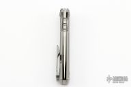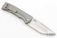 This Chaves Ultramar Redencion Tanto features a satin finished blade. The handle is made up of stonewashed titanium, skull pocket clip (positioned for tip up carry), and a matching titanium backspacer. Comes with original box and an extra regular titanium pocket clip. The knife opens with the use of Lee Williams' Kick Stop flipper.  Includes the original box. New from Maker!