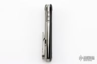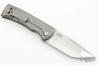 This Chaves Ultramar Redencion Tanto features a satin finished blade. The handle is made up of stonewashed titanium and G-10 frame, titanium skull pocket clip (positioned for tip up carry), and a matching titanium backspacer. Comes with original box and an extra regular titanium pocket clip. The knife opens with the use of Lee Williams' Kick Stop flipper.  Includes the original box. New from Maker!