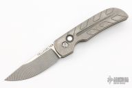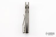 This Ridgeline Auto by Brian Fellhoelter features a tumble finished blade and notched thumbrest. The handle has a stonewash finished titanium frame and a tip up titanium clip. Marked MAGNACUT on blade. New from Maker!