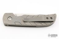 "I am a folder maker. While there will always be the occasional fixed blade, folders are my passion. The steels I enjoy working with include CPM154, ATS-34, 440C, S30V, and Stainless Damascus from Devin Thomas. All of the metal parts on my knives that can be Titanium are Titanium including frames, liners, thumbstuds, bolsters, clips and spacers. Pretty much everything except for the blade. I often anodize a substantial portion of my titanium, and can get a deep green that few makers succeed at. As far as handle materials go, I mostly use Carbon fiber, G10, or Micarta. I use large bronze pivot bushings in all of my folders, and either Nylatron or Bronze washers. All of my parts are made in-house except the screws. I have an old Bridgeport Mill, an older Logan Lathe (1943), a Hardcore grinder, and various other tools, lots of them made by myself. I also do all of my own Heat treating in an EvenHeat Oven." My knives have won several major awards, including Best Tactical Folder at the Blade Show 2011.