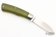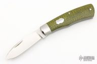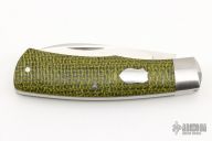 This slipjoint from Pepe Jalomo features a satin finished blade with nail nick. The handle has stainless steel bolsters, burlap covers with a stainless steel escutcheon, pins, and liners, stainless steel spring. Spring is flush in the closed, half stop, and open positions.Includes a padded zippered case and COA. Has some light scratches, excellent condition otherwise.