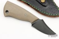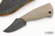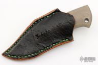 This Pocket EDC by Matt Behnke features a black blade with a nearly sharpened top edge, .121" blade stock and 1.083" blade depth, full tang construction. The handle has Delorean G-10 scales with stainless steel Corby bolt and lanyard hole. Comes with a black leather sheath with Ulti-Clip and zippered case. New from maker!