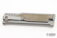 The smaller EXO-M has all the benefits of the full-size EXO from Reate Knives, but has even more to offer! For one, the smaller size makes this an even more convenient pocket knife. Plus, with a secure titanium pocket clip and lock, Reate ups their game with this gravity OTF Knife. A safety slide lock on the face of the handle is ideal for user safety, and the new pocket clip makes EDC carrying as easy as can be. By pinching the milled handle scales and dropping the frame at an angle, you can easily slide the blade in and out with nothing but gravity. If you haven't guessed it already, this means hours of quality fidgeting! That aside, the build and materials of this knife are Reate standard: simply excellent and endlessly functional. Like the EXO, the EXO-M boasts flawless fit and finish, smooth action, and a razor edge to meet your cutting needs. It includes a leather slip for safe carrying as well as the titanium clip.