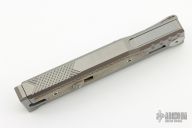 The smaller EXO-M has all the benefits of the full-size EXO from Reate Knives, but has even more to offer! For one, the smaller size makes this an even more convenient pocket knife. Plus, with a secure titanium pocket clip and lock, Reate ups their game with this gravity OTF Knife. A safety slide lock on the face of the handle is ideal for user safety, and the new pocket clip makes EDC carrying as easy as can be. By pinching the milled handle scales and dropping the frame at an angle, you can easily slide the blade in and out with nothing but gravity. If you haven't guessed it already, this means hours of quality fidgeting! That aside, the build and materials of this knife are Reate standard: simply excellent and endlessly functional. Like the EXO, the EXO-M boasts flawless fit and finish, smooth action, and a razor edge to meet your cutting needs. It includes a leather slip for safe carrying as well as the titanium clip.