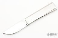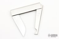 This "Gravity" by Roberto Ottonello features a mirror polished blade. The handle is two pieces of 316 SS. Comes with a leather slip sheath and COA. New from maker.