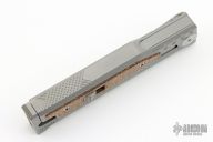 The smaller EXO-M has all the benefits of the full-size EXO from Reate Knives, but has even more to offer! For one, the smaller size makes this an even more convenient pocket knife. Plus, with a secure titanium pocket clip and lock, Reate ups their game with this gravity OTF Knife. A safety slide lock on the face of the handle is ideal for user safety, and the new pocket clip makes EDC carrying as easy as can be. By pinching the milled handle scales and dropping the frame at an angle, you can easily slide the blade in and out with nothing but gravity. If you haven't guessed it already, this means hours of quality fidgeting! That aside, the build and materials of this knife are Reate standard: simply excellent and endlessly functional. Like the EXO, the EXO-M boasts flawless fit and finish, smooth action, and a razor edge to meet your cutting needs. It includes a leather slip for safe carrying as well as the titanium clip.