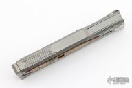 The smaller EXO-M has all the benefits of the full-size EXO from Reate Knives, but has even more to offer! For one, the smaller size makes this an even more convenient pocket knife. Plus, with a secure titanium pocket clip and lock, Reate ups their game with this gravity OTF Knife. A safety slide lock on the face of the handle is ideal for user safety, and the new pocket clip makes EDC carrying as easy as can be. By pinching the milled handle scales and dropping the frame at an angle, you can easily slide the blade in and out with nothing but gravity. If you haven't guessed it already, this means hours of quality fidgeting! That aside, the build and materials of this knife are Reate standard: simply excellent and endlessly functional. Like the EXO, the EXO-M boasts flawless fit and finish, smooth action, and a razor edge to meet your cutting needs. It includes a leather slip for safe carrying as well as the titanium clip.
