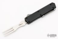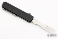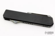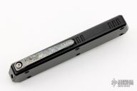 This G13 OTF Auto by Golgoth Knives features a satin finished fork blade. The handle has a black aluminum chassis with anodized titanium button and tip down titanium clip. Comes with velcro case. New from maker!