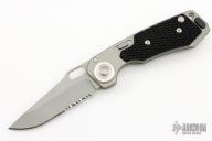 This HAWK D.O.G. is a Grant & Gavin Hawk design that incorporates their Deadbolt Over Grabstep locking mechanism. It's an easy to use knife with smooth action using the thumb hole. The CRKT HAWK DOG has a bead blasted partially serrated clip point style blade and T6 aluminum handles with Zytel scales. Includes the original box and papers.  Excellent Condition.
