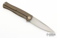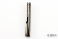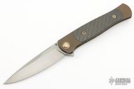 This Pike from Alexander Cheburkov features a drop point matte finish blade with swedge, notched thumbrest and flipper. The handle is comprised of anodized titanium double bolsters, carbon fiber scales over titanium liner, backspacer and lockside. Matching tip up clip. Great blade seating, detent and lock up. Includes original box and COA. Excellent condition.