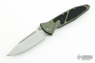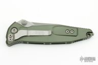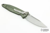 This Socom Elite manual linerlock folder by Microtech Knives has a stonewashed blade with notched thumbrest and dual thumbstuds. Has an OD Green aluminum handle with non-slip inlays, tip down blasted stainless steel clip. Serial number 5798 and dated 08/2019. Comes with original box and papers. Has a double scuffs on the frame, otherwise excellent condition.