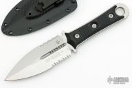 This SBD by Microtech Knives and Borka Blades features a stonewash finished double-edged blade with two partially serrated edges, .188" blade stock and 1.556" blade depth, full tang construction with black G-10 scales. Comes with the original kydex sheath, box and papers, dated 02/2023 s/n 2642. Excellent Condition.