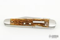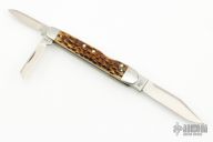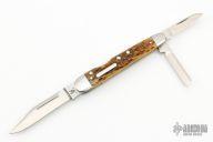 This Case/Bose yearly knife features three satin finished blades with nail nicks, the main blade is a lockback, the two smaller blades are both slipjoints with halfstops. The handle has stainless steel bolsters and cap, bone covers, stainless steel liners and back springs. Comes with a leather zippered case, box and papers.  The padded zippered case has been signed by Tony Bose. Excellent condition.