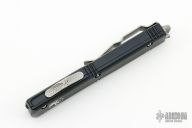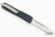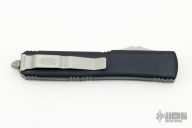 This Ultratech OTF automatic features a stonewash finished drop point blade with fullers and single blade edge. Handle is contoured black aluminum, marked 12/2018 with serial number 108925. Stainless steel hardware, and clip. Comes with original box and papers. Has a couple light scuffs, otherwise excellent condition.