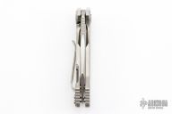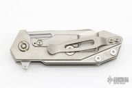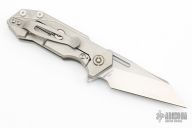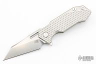 This Half Track from Hinderer Knives features a stonewash finished Magnacut blade with fullers, notched thumbrest and flipper. The handle has a stonewash finished titanium frame with matching titanium clip is positioned for tip up, right hand carry. Comes with original box and extra hardware. New condition.