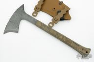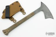 "The Cure" by Frank Landau features a hammer marked head with a spike at the rear, and front spike, .154" blade stock, full tang construction with green linen micarta scales. Comes with a kydex sheath with belt loops. New from maker!