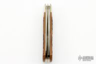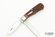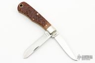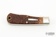 This Bullet Knife by Remmington has two satin finished blades with nail nicks. The handle has nickel silver bolsters, jigged bone covers, brass liners and steel springs. Excellent Condition.