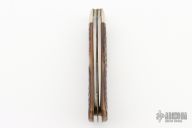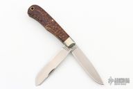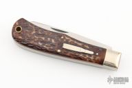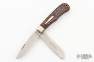 This Bullet Knife by Remmington has two satin finished blades with nail nicks. The handle has nickel silver bolsters, jigged bone covers, brass liners and steel springs. Excellent Condition.