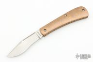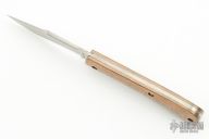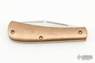 This slipjoint by Jeffery Mitchell features a hand rub satin finished blade with long pull. The handle has mokume covers, stainless steel spring, has half-stop. Comes with a zippered case. Excellent condition.