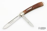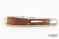 This Bullet Knife was the Remington Collector's Series Knife. Includes original box and paperwork.  This knife has two satin finished blades with nail nicks. The handle has nickel silver bolsters, jigged bone covers, brass liners and steel springs. Comes with original box. Excellent condition.