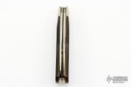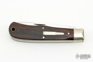 This "Hunter" Bullet Knife was the Remington Collector's Series Knife for 1989. It was intended to help sales of their model 4 and 6 rifles. Has two satin finished blades with nail nicks. The handle has pinched nickel silver bolsters, cocobolo covers, brass liners and steel springs. Comes with original box and papers. Excellent Condition.