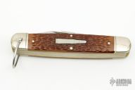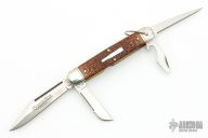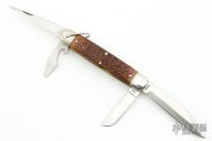 The knife by Remington features a 4 different satin finished blades all with single nail nicks.  The handle is fo jigged bone. The knife has brass pins, along with brass liners along the spine. Bolsters are nickel silver. Includes the original box and papers.  Excellent Condition.