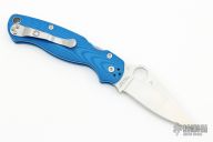 This Blade HQ Exclusive Spyderco Paramilitary 2 features blue anodized aluminum scales for its handle and a satin finished blade made of CTS BD1N blade steel.