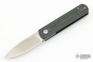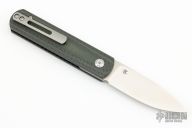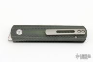 The EWC was designed by Ray Laconico and produced by Monterey Bay Knives. It features a satin finished blade with notched front flipper. This knife does not lock and has a double detent system. Green carbon fiber scales with a tip up bead blasted titanium clip. Has a couple light scuffs, excellent condition.