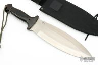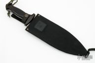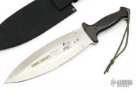 This Combat Smatchet from Al Mar Knives features a double edged satin finished blade with partially serrated edges, .178" blade stock and 2.893" blade depth, full tang construction. The handle has black/red paper micarta scales over full tang construction. Signed "Rex Applegate W.Z. Fairbairn". Comes with original black nylon sheath. Excellent condition.