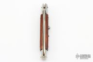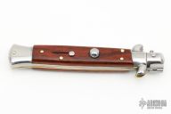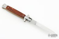 This Swivel Bolster Auto has a mirror polished stainless steel spear point blade. The handle is composed of stainless steel front and rear bolsters, brass liners all complemented by cocobolo scales. Excellent Condition.