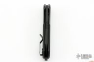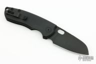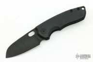This F5.5 by Urban EDC Supply is a Vox Design. It features a dark tumble finished blade with thumbhole and notched thumbrest. The handle has black g10 scales, blasted titanium liner, backspacer and tip up clip. Rides on bearings, nice detent, lockup and blade seating. Comes with original box and zippered case. Excellent condition.