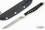 This Spike by Barry Dawson features a satin finished blade with .204" blade stock and .417" Blade depth. The handle has black epoxy soaked cord wrapped handle. Comes with a kydex sheath. Excellent condition.
