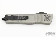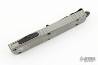 This Troodon OTF automatic features a double edged black blade with a standard edge. The handle is composed of titanium gray aluminum with a stainless steel clip. Glass breaker. Includes Microtech box and papers. S/N #39733 and dated 08/2022. Excellent Condition.