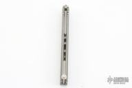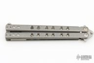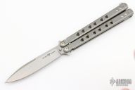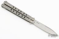 The Balisong by Les George, and Wilson Tactical features a stonewashed blade.  The handles are stonewash finished titanium handles with latch, bushings, phosphor-bronze and washers. Includes original box, pocket clip, zipper case and papers. Excellent condition.