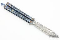 This B2 Balisong by Sergey Rogovets features a Nichols XHP Core Damascus tanto blade. The handle has Black Timascus handles with bronzed hardware.  Runs on ceramic thrust bearings.  Comes with a, velvet pouch and COA s/n 2030 and dated November 2020. Excellent condition.