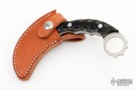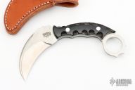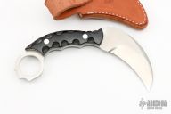 This Ghost II Karambit by Bark River Knives features a satin finished hawkbill blade with false top edge and notched thumbrest, .185" blade stock and 1.3" blade depth, full tang construction. The handle has black G-10 scales and a ring at the butt. Comes with a kydex sheath. Has a couple light scuffs, excellent condition.