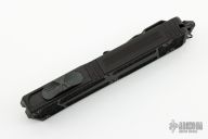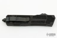 The Microtech Scarab II is a high quality tactical out-the-front knife, based on the original Microtech Ultratech design. Built to withstand the extreme, the Scarab II excels in high-intensity covert operations. The Scarab II is designed for a broad spectrum of utility and close quarter combat applications for use by qualified law enforcement, military, and government agency operatives. The Scarab II is fabricated to the highest possible standards to assure reliability and safety with its use. Featuring a one-handed, open and close, dual-action out-the-front (OTF) design, and double edge blade. The Scarab is produced with a large easy-to-grip handle that contains non-slip grip inlays on both sides. Comes with original box and papers. Excellent condition.