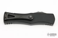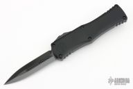 This Hera by Microtech Knives features a double-edged DLC stonewashed blade with dual fullers. The handle has a black aluminum frame with a tip down DLC titanium clip with ceramic ball inset. Dated 08/2021 and s/n 080. Limited edition with trit button. Comes with original box and papers. Excellent condition.