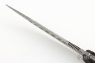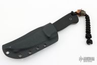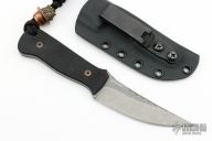 This LSII by Frank Landau III features an acid washed blade with false top edge, fileworked spine and notched thumbrest, .141" blade stock and 1.080" blade depth, full tang construction. The handle has black G-10 scales with black screws, lanyard hole. Comes with a C4 Industries kydex sheath with clip. New from maker.