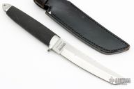 This Master Tanto by Cold Steel features a satin finished blade with .185" blade stock and 1.099" blade depth, hidden tang construction. The handle consists of a stainless steel guard and pommel with a textured rubber grip. Includes black leather sheath with belt loop. Has some scratches, otherwise good condition.