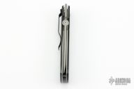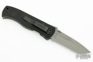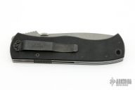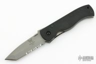 This 970S Emerson Designed CQC-7 by Benchmade features a bead blasted, chisel ground, drop point tanto style blade with swedge, thumb disc, notched thumb ramp and partial serrations. The handle is comprised of black G10 scales over titanium liners and black polymer backspacer. The steel pocket clip is positioned for tip down carry. Lanyard hole in pommel. Excellent condition. Comes with original box and papers.