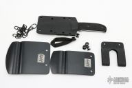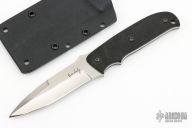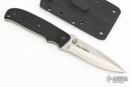 This "First Edition" by Bud Nealy features a hand rub satin finished blade with sharpened top edge and notched thumbrest, .127" blade stock and 1.127" blade depth, full tang construction with textured black G-10 scales. Comes with kydex sheath and full MCS system and papers. Excellent condition. #5698