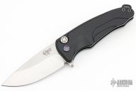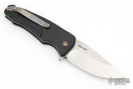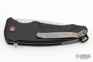 This Smooth Criminal by Medford knives features a satin finish drop point blade with flipper. The handle has an anodized and tumbled titanium frame with tip up tumbled titanium clip and backspacer. Nice lockup and blade seating. Comes with original box and papers. Excellent condition.