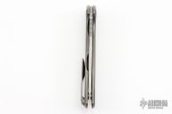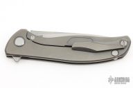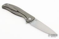 This Model 95 framelock flipper from Shirogorov has a flat ground and tumbled blade with a milled and tumbled titanium frame with matching tip up clip. Excellent lockup, crisp detent, and perfect seating. Comes with original box and papers. Excellent condition.