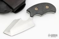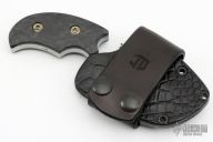 This Tactical Badger is a collaboration between Reese Weiland and Joe DeJesus features a hand rub satin finished blade with sharpened top edge, .240" blade stock and 1.519" blade depth, full tang construction. The handle has marble carbon fiber scales with titanium hardware. Comes with a black leather over felt lined kydex sheath by Freddy Ramos Leather. Comes with a zippered case. New from maker.